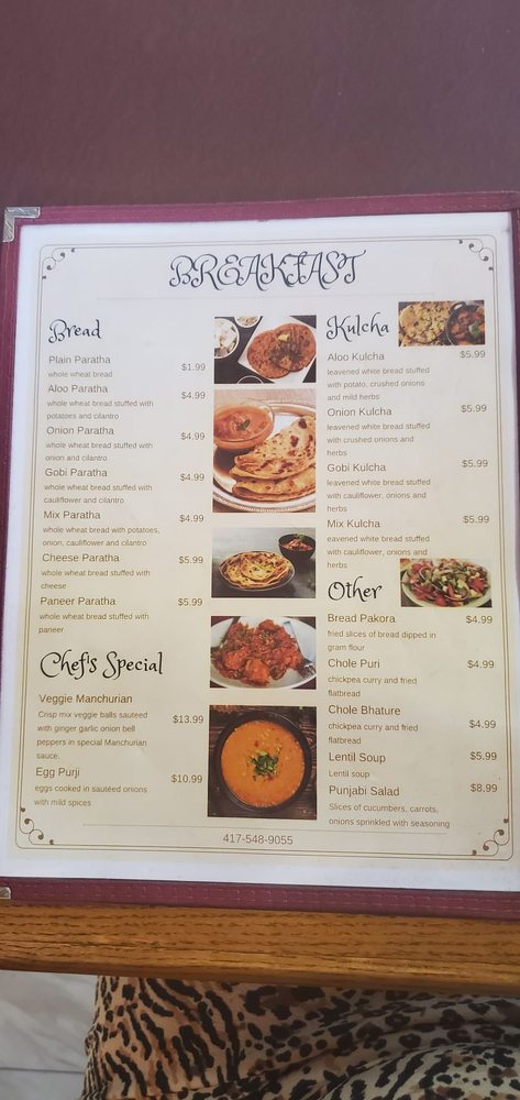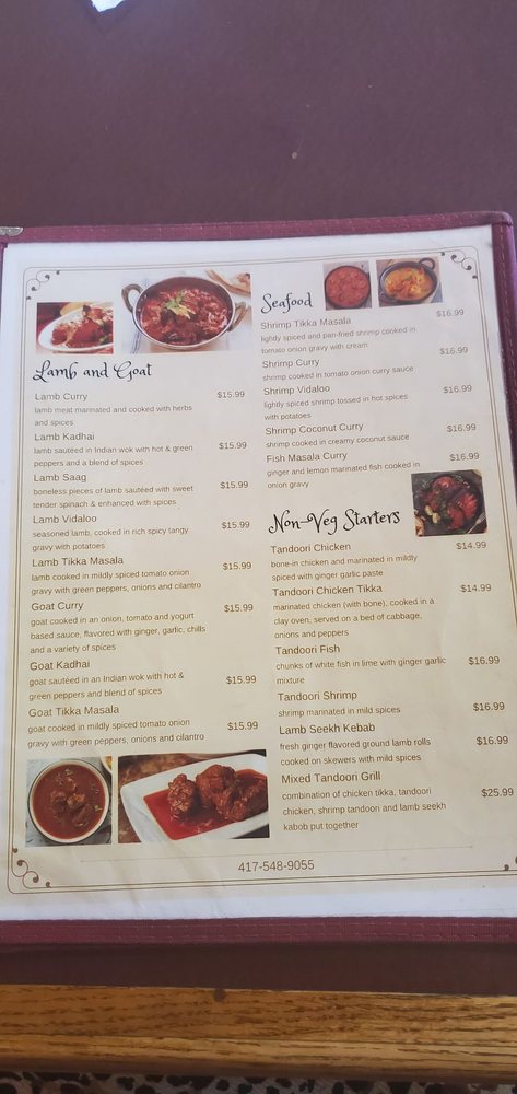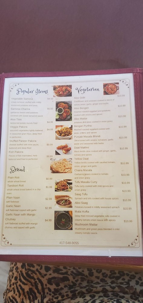 Introducing the menu at Missouri Dhaba, a unique Indian bar in Sarcoxie, MO. Offering takeout, delivery, and a range of amenities such as wheelchair accessibility and free Wi-Fi, this establishment brings a taste of authentic Punjabi cuisine to southern Missouri. Despite the absence of a traditional menu, the staff guide patrons through an array of delicious dishes, including spicy vegetarian biryani, buttered chicken, and paneer tikka masala. Customers rave about the generous portions and delectable flavors, with favorites like paratha with yogurt and pickle receiving high praise. With ample parking, clean facilities, and a cozy ambiance, Missouri Dhaba is a must-visit destination for travelers seeking traditional Indian comfort food. Experience the true essence of a Dhaba and indulge in over 35 culinary delights at this hidden gem in the heart of Missouri.